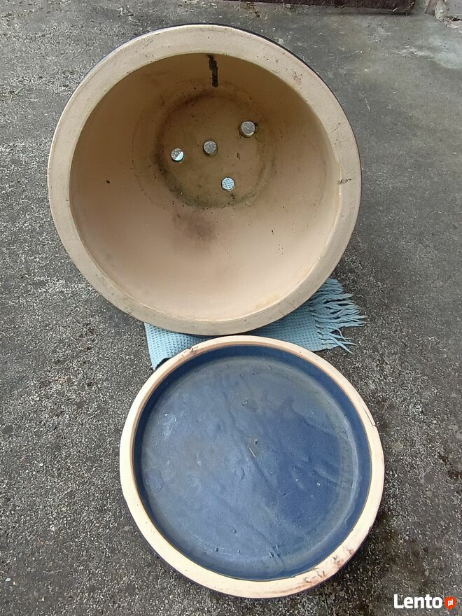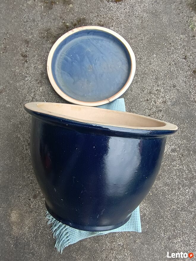 Duża donica ceramika w kolorze ciemnego kobaltu z podstawką ceramiczną, wymiary donicy: wysokość 32 cm, średnica u góry 48 cm.Sprawdź zainteresowanie tym ogłoszeniem