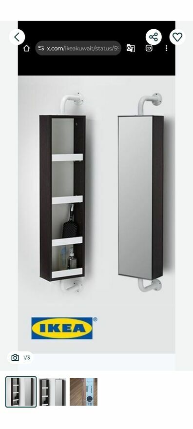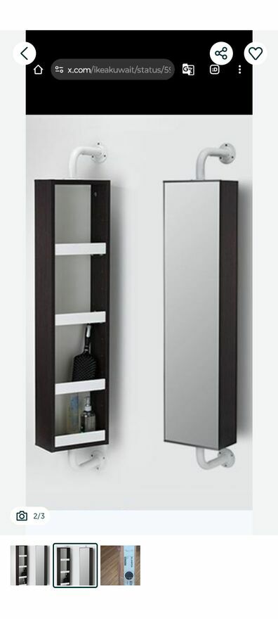 Szafka - toaletka obrotowa Ikea do zamocowania na ścianę lub mebela, z lustrem i półeczkami z tyłu. Wysokość 100 cm, szerokość 25 cm, głębokość 13,5 cm, należy dodać też około 15 cm długość wysięgników metalowych, Stan bardzo dobry.Sprawdź zainteresowanie tym ogłoszeniem